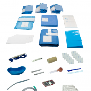 1 Sábana para cesárea autoadherible con refuerzo, bolsa recolectora y porta cables