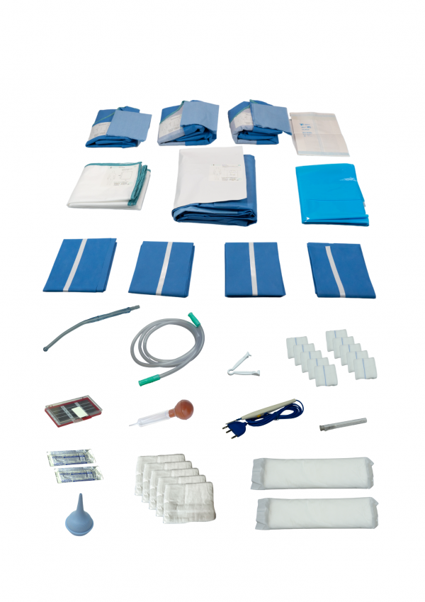 1 Sábana para cesárea autoadherible con refuerzo, bolsa recolectora y porta cables